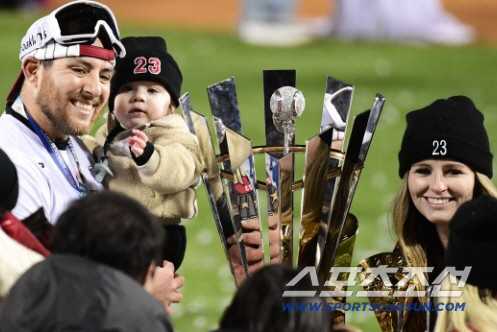 13일 잠실야구장에서 열린 한국시리즈 5차전 LG와 KT의 경기. LG가 KT에 승리하며 한국시리즈 우승을 차지했다. LG 오스틴 가족이 우승트로피와 함께 기념 포즈를 취하고 있다. 잠실=송정헌 기자 [email protected]/2023.11.13/