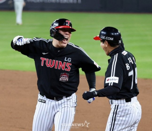 LG 트윈스 외야수 김현수(가운데). /사진=강영조 선임기자