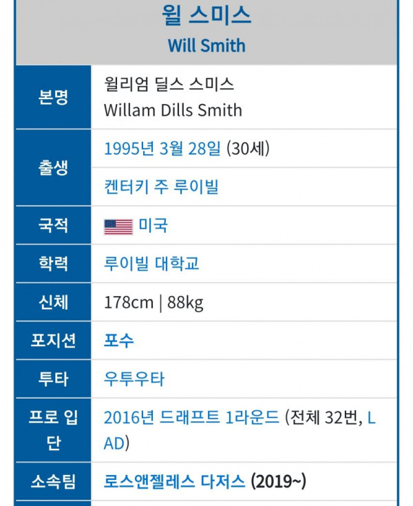 그리고 동명이인인 95년생 포수 윌 스미스는 다저스 소속으로 20년,24년,그리고 오늘 끝난 25년 시즌 우승