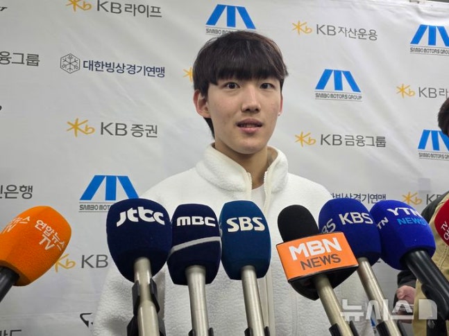 [서울=뉴시스] 김희준 기자 = 임종언(노원고)이 13일 서울 양천구 목동실내빙상장에서 2025~2026시즌 쇼트트랙 국가대표 2차 선발전을 마친 뒤 인터뷰를 하고 있다. [email protected]