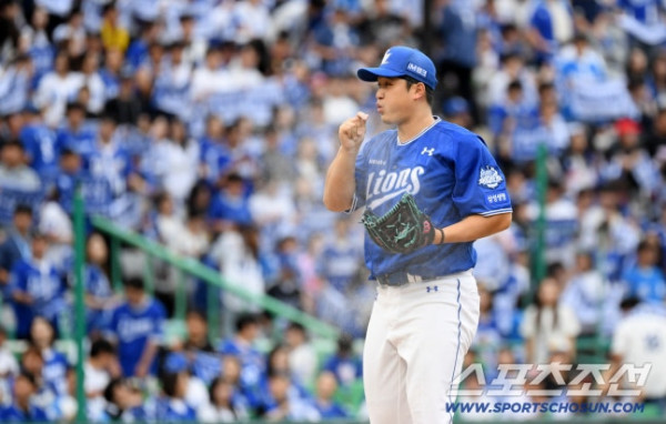 가을야구 악몽을 �튼� 첫 승을 거둔 최원태가 미소 지으며 그라운드에 나오자 주장 구자욱은 장난기 가득한 표정으로 바로 앞자리를 양보했다. 박진만 감독은 인자한 미소로 호투를 펼친 최원태 등을 두들겼다.