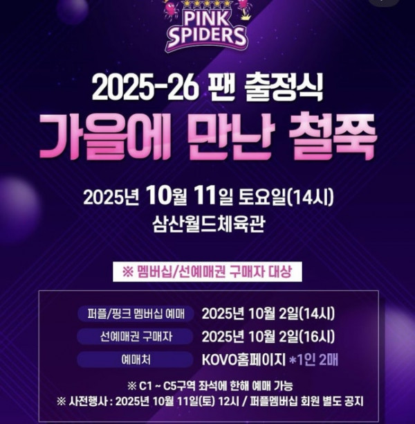 흥국생명의 2025-2026시즌 팬 출정식 안내문