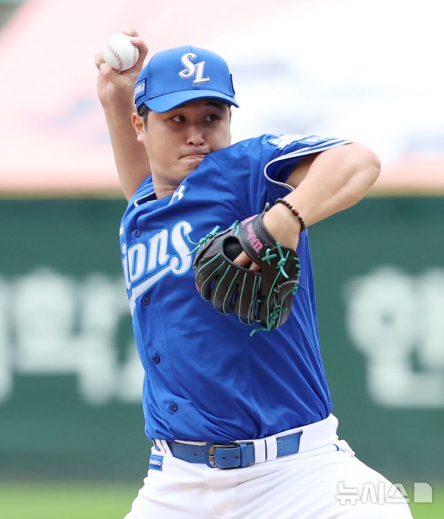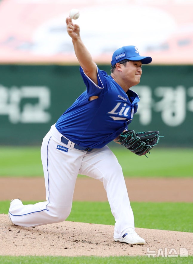 [인천=뉴시스] 조성우 기자 = 9일 인천 미추홀구 SSG랜더스필드에서 열린 2025 KBO 포스트시즌 준플레이오프 1차전 삼성 라이온즈와 SSG 랜더스의 경기, 삼성 선발투수 최원태가 역투하고 있다. 2025.10.09. [email protected]