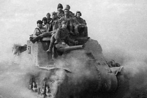 소련 병사들이 m3 전차 '제너럴 리'를 타고 세바스토폴로 이동하고 있습니다. 1944년.