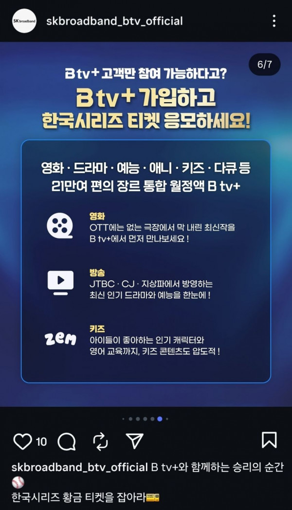B tv에서 한국시리즈 티켓 응모할 수 있는 이벤트가 진행 중이더라고요.