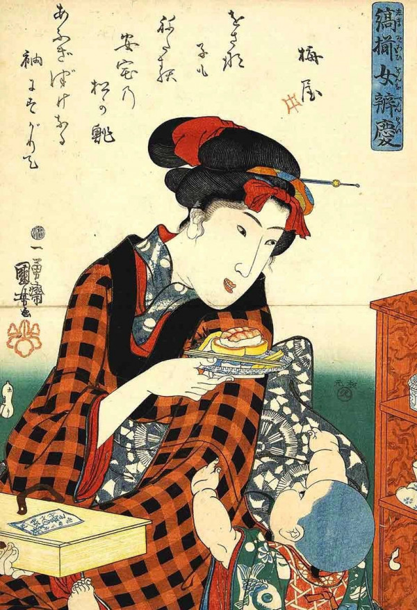 《니기리즈시를 구걸하는 어린이》, 우타가와 쿠니요시, 1844년