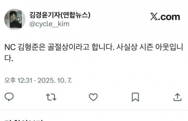 오늘뿐만 아니라 nc가 준플 가더라도 출전 불가