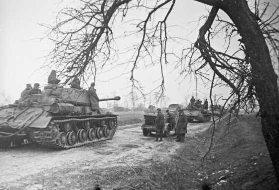 비스와 강 너머의 교두보에서 행진하는 소련 is-2 전차 부대.