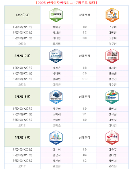 ■ 2025 여자바둑리그 17라운드 오더