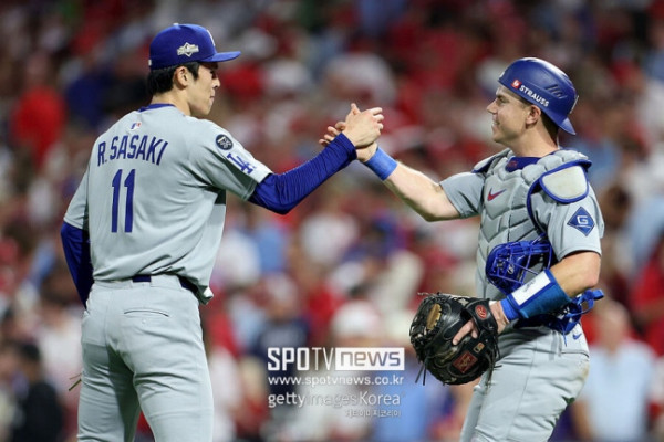 다저스 루키 사사키 로키가 내셔널리그 디비전시리즈 1차전 마무리를 책임졌다.