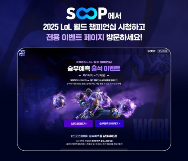 SOOP은 이번 이벤트를 통해 팬들이 경기를 예측하고, 응원하며, 시청하는 과정에서 함께 즐길 수 있는 경험을 제공할 계획이라고 전했다. 매일 참여할수록 더 많은 혜택이 주어지는 구조로, 팬들이 월즈 2025 기간 내내 특별한 즐거움을 느낄 수 있다는 설명이다.