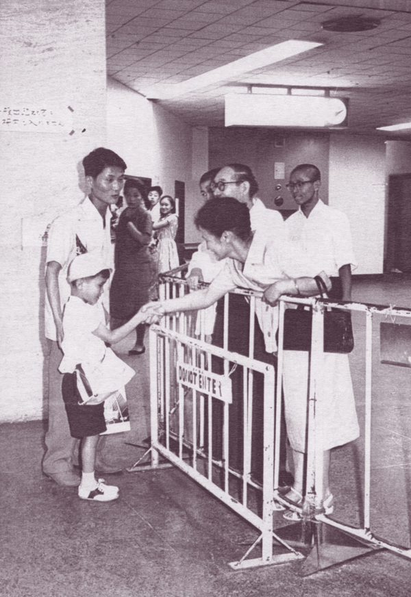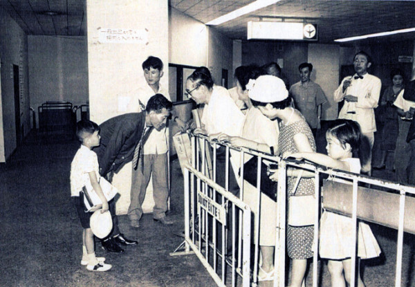 ▲ 1962년 8월 1일 일본 하네다공항에 도착했을 때 마중 나온 기타니 九단 부부를 비롯해 도장 선배들이 따뜻하게 맞아주었다. 애타게 기다리던 형 상연이 동생에게서 눈을 떼지 못하고 있다