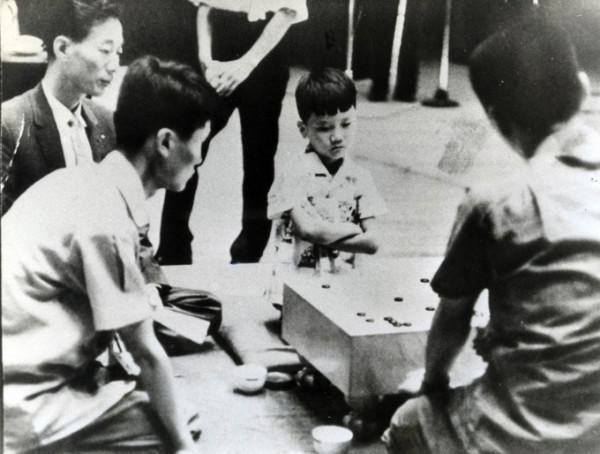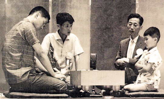 ▲ 1962년 조치훈이 일본으로 떠나기 직전 7월, 작은아버지 조남철 七단과 도일을 기념하는 지도기 세 판을 두었다. 꼬마 조치훈은 세 판 다 졌지만 일본에 도착하자마자 둔 기타니 문하 100단 달성 기념대국에서는 린하이펑 六단에게 다섯 점으로 멋지게 이겨 큰 관심을 끌었다.