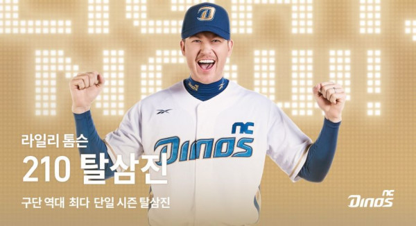 NC 다이노스 라일리 선수가 구단 단일 시즌 최다 탈삼진으로 구단 역사에 이름을 올렸습니다. 라일리 선수는 오늘(4일) 창원NC파크에서 열린 SSG랜더스와의 시즌 최종전에 선발로 등판해 시즌 210번째 탈삼진을 기록했습니다.
