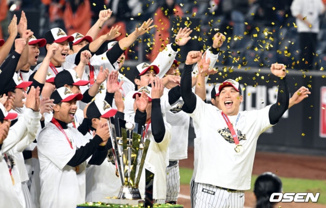 [OSEN=대전, 이대선 기자] 이변은 없었다. 2025시즌 우승팀은 무적 LG 트윈스다. 프로야구 LG 트윈스는 31일 대전 한화생명볼파크에서 열린 2025 신한 SOL뱅크 KBO 한국시리즈(7전 4선승제) 한화 이글스와의 5차전에서 4-1로 승리했다.정규시즌 1위 LG는 시리즈 전적 4승 1패로 통합우승 금자탑을 쌓았다. LG의 통합우승은 1990년, 1994년, 2023년에 이은 통산 4번째로, 염경엽 감독은 2023년 부임 후 3년 사이 팀을 두 차례나 정상에 올려놓는 위대한 업적을 달성했다. 2023년 1위, 2024년 3위, 2025년 1위로 KBO리그에 트윈스 왕조 시대를 활짝 열었다. 반면 2위 한화는 플레이오프를 거쳐 2006년 이후 19년 만에 한국시리즈 무대를 밟았지만, LG의 벽을 넘지 못하며 1999년 이후 26년 만에 통산 두 번째 우승이 무산됐다. MVP를 수상한 LG 김현수가 동료들의 축하를 받고 있다. 2025.10.31 /[email protected]