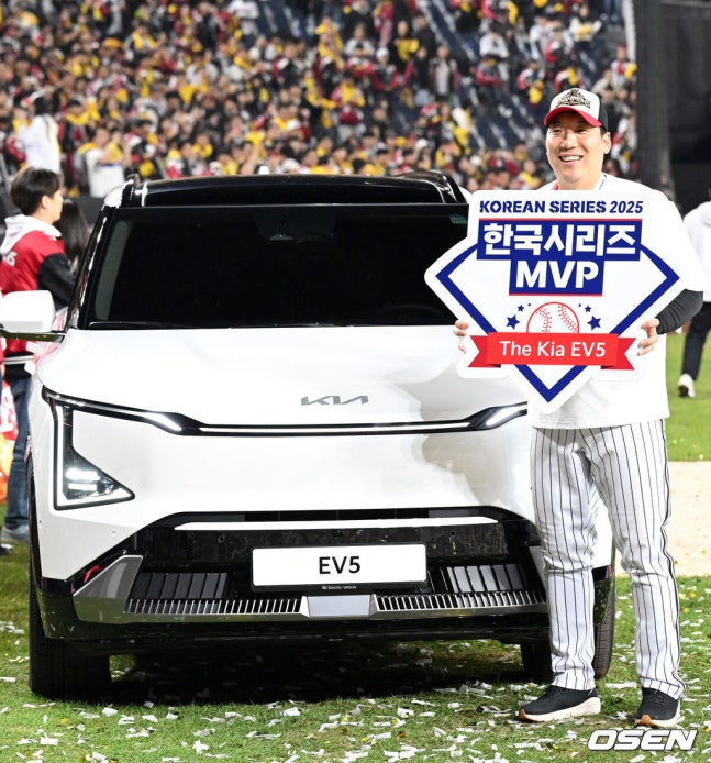 [OSEN=대전, 이대선 기자] 이변은 없었다. 2025시즌 우승팀은 무적 LG 트윈스다. 프로야구 LG 트윈스는 31일 대전 한화생명볼파크에서 열린 2025 신한 SOL뱅크 KBO 한국시리즈(7전 4선승제) 한화 이글스와의 5차전에서 4-1로 승리했다.정규시즌 1위 LG는 시리즈 전적 4승 1패로 통합우승 금자탑을 쌓았다. LG의 통합우승은 1990년, 1994년, 2023년에 이은 통산 4번째로, 염경엽 감독은 2023년 부임 후 3년 사이 팀을 두 차례나 정상에 올려놓는 위대한 업적을 달성했다. 2023년 1위, 2024년 3위, 2025년 1위로 KBO리그에 트윈스 왕조 시대를 활짝 열었다. 반면 2위 한화는 플레이오프를 거쳐 2006년 이후 19년 만에 한국시리즈 무대를 밟았지만, LG의 벽을 넘지 못하며 1999년 이후 26년 만에 통산 두 번째 우승이 무산됐다. 한국시리즈 MVP를 차지한 LG 김현수가 부상으로 받은 차량 앞에서 포즈를 취하고 있다. 2025.10.31 /[email protected]