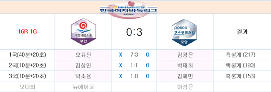 김경은 5단이 활약한 포스코퓨처엠은 부안붉은노을을 3-0으로 완파했다. 김경은 앞뒤로 3지명 박태희 3단이 3지명 김상인 2단을, 1지명 김혜민 9단이 2지명 박소율 4단을 꺾었다.