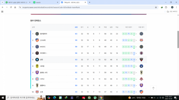 | 순위 | 팀 | 경기 | 승 | 무 | 패 | 승점 |