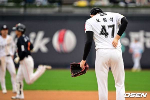 KT는 1회초 일찌감치 한화에 주도권을 내줬다. 오원석이 이원석-권광민 테이블세터의 연속 안타로 처한 무사 1, 3루 위기에서 최인호에게 3점홈런을 헌납했다. 볼카운트 1B-1S에서 3구째 가운데로 몰린 134km 슬라이더가 야속하게도 비거리 129m 우월 홈런으로 이어졌다. 오원석은 이진영을 볼넷, 이도윤을 좌전안타로 내보내며 계속 흔들렸고, 내일이 없는 이강철 감독은 경기 개시 10분 만에 오원석을 내리고 패트릭 머피를 올리는 초강수를 띄웠다.