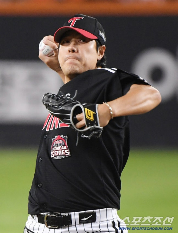 27일 서울 잠실구장에서 열린 한화와 LG의 한국시리즈 2차전. 4회초 2사 만루에 등판한 김진성이 투구하고 있다. 잠실=정재근 기자 [email protected]/2025.10.27/