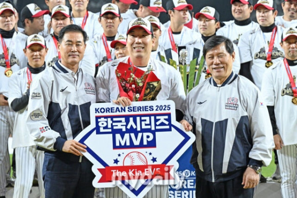 31일 대전 한화생명 볼파크 야구장에서 열린 LG 트윈스의 '2025 신한 SOL 뱅크 KBO 한국시리즈 우승 시상식.한국시리즈 MVP로 선정된 LG 김현수. /대전=한혁승 기자 [email protected], 대전=곽경훈 기자 [email protected]
