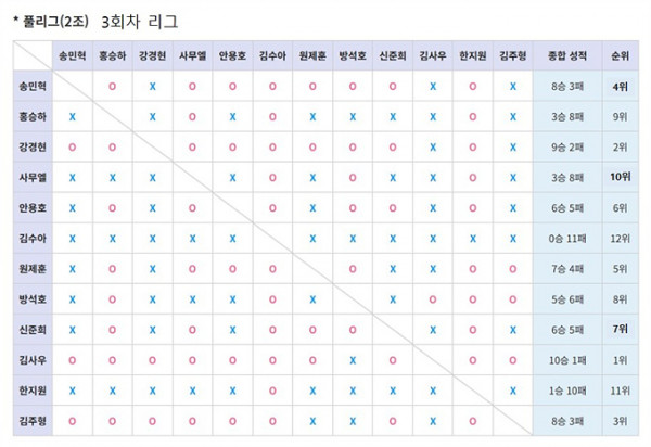 대진표 상하좌우 이동하며 볼수 있습니다.