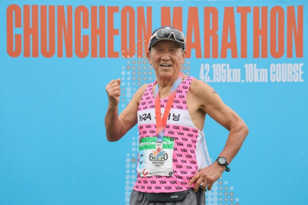 1944년생 최동욱씨는 지난 26일 열린 2025 조선일보 춘천마라톤 풀코스(42.195㎞) 최고령 완주자에 이름을 올렸다. 기록은 4시간 48분 14초. 손자뻘인 20대도 결승선 통과 후 아스팔트에 쓰러지는 경우가 많았는데, 80대인 최씨는 지친 기색이 없었고, 무릎이나 다리에 통증도 없어 보였다. 바나나 등 간식을 먹으면서 아내와 동호회 회원들의 축하를 받은 그는 “4시간 20분대 기록에 도전했는데 아쉽다”고 했다.