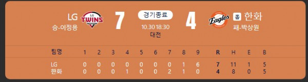 이후 김서현 등판하고 9회부터 실점