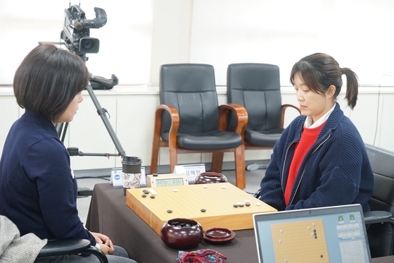 ▲ 현역 여자리거 간 대결에서 김혜민 9단(오른쪽)이 권효진 8단을 6연패의 낭떠러지로 몰며 시즌 8승째.