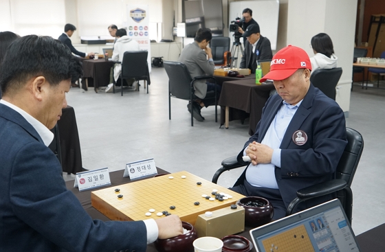 ▲ 빨간 모자를 쓰고 등장한 맥아더장군 정대상 9단의 기세는 김일환 9단에게 역전패를 당하며 사그러들었다.