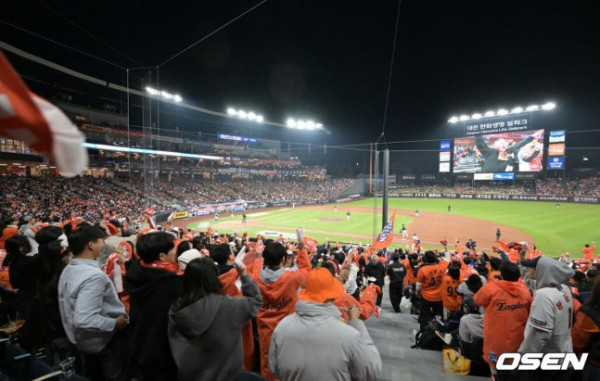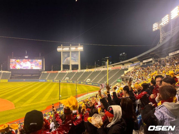 [OSEN=대전, 한용섭 기자] LG 트윈스가 마련한 한국시리즈 3~5차전 원정 경기 때 잠실구장에서 전광판 중계를 보는 응원전 이벤트가 뜨거운 반응을 보였다.