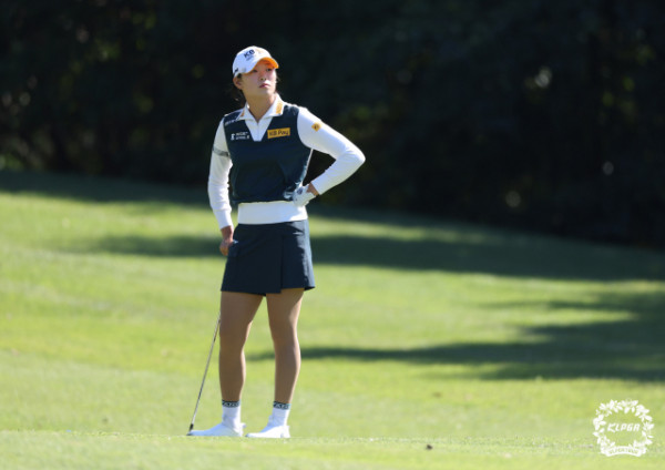 코스 공략을 고심하고 있는 방신실. 사진 제공=KLPGA