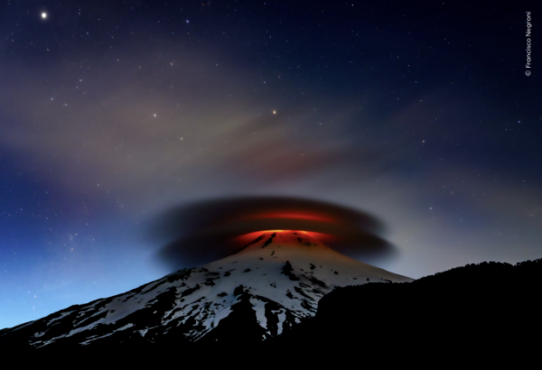 '불의 고리'는 칠레 빌라리카 화산에서 용암이 한 쌍의 아름다운 원형 구름을 비추는 장면을 포착했다. 화산 활동을 모니터링하기 위해 정기적으로 화산을 방문하는 사진작가 프란시스코 네그로니가 촬영했다.