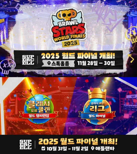 '클래시 오브 클랜 챔피언십'과 '클래시 로얄 리그 월드 파이널'은 오는 10월 31일부터 11월 2일까지 미국 조지아주 애틀랜타에서 동시에 진행된다. 이어 11월 28일부터 30일까지는 스웨덴 스톡홀름에서 '브롤스타즈 월드 파이널'이 개최된다.