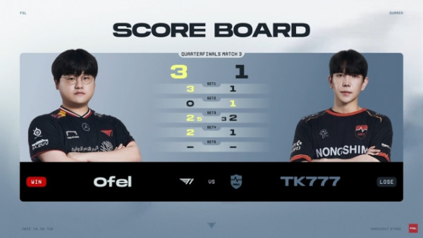 28일 잠실 DN 콜로세움에서 진행된 '2025 FC 온라인 슈퍼 챔피언스 리그(FSL)' 서머 8강 3경기, T1 '오펠' 강준호와 농심 레드포스 'TK777' 이태경의 대결에서 '오펠'이 3:1로 승리했다. 기세가 넘어갈 뻔한 3세트에서 역전승을 거두며 흐름을 되찾아왔고, 4세트를 승리하며 4강 진출을 확정했다.