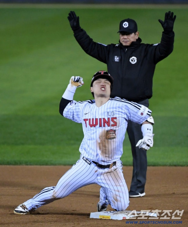 2차전 MVP는 문보경이 받았다. 문보경도 홈런을 쳤다. 문보경이 5타수 4안타 1홈런 5타점 2득점 불방망이를 휘둘렀다. 결승타를 친 선수에게 주는 포템터짐 상은 홍창기가 가져갔다.