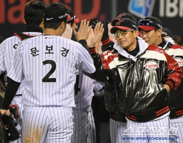[잠실=스포츠조선 권인하 기자]1회 4점을 내줬지만 타선의 대폭발로 13대5의 역전승을 거두며 2연승으로 한국시리즈 우승에 한발 더 다가선 LG 트윈스.