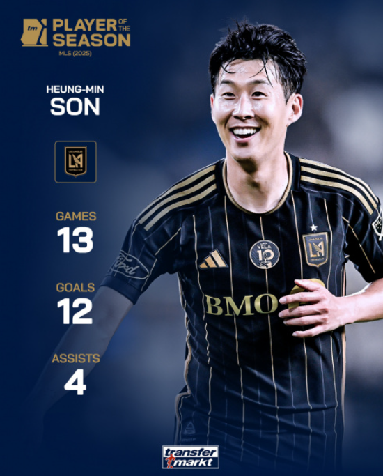 트랜스퍼마르크트가 손흥민을 2025시즌 MLS 올해의 선수로 선정했다. 사진=트랜스퍼마르크트