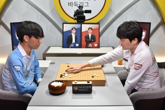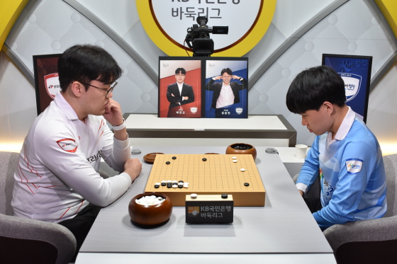 막판에 몰린 수려한 합천 고근태 감독은 반격을 위해 막내 김승진 카드를 꺼내들었다. 상대는 12월 국내 랭킹 9위이자, 바둑리그 6승 2패로 다승 2위에 올라있는 상승세의 박민규였다.