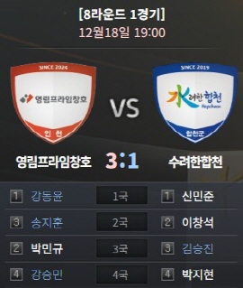 2국 영림프라임창호 송지훈(3지명) vs 수려한 합천 이창석(2지명)