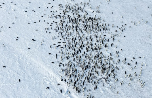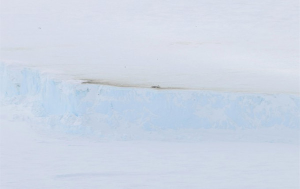 빙산은 바다 쪽으로는 경사가 완만하지만 번식지로 가는 길목에 높고 가파른 절벽을 만들었다. 드론 촬영 사진에는 절벽을 내려가지 못해 번식지로 돌아가지 못하고 있는 수십~수백 마리의 어미 황제펭귄과 배설물 흔적이 확인됐다. 돌아갈 길이 막힌 어미들이 긴 시간 '고민'한 흔적이다.