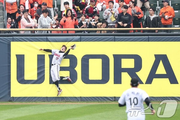 와 한국시리즈 1차전에서는 문현빈의 비거리 126m 장타성 타구를 펜스 앞에서 점프캐치로 낚아채 우승 향방을 결정짓는 장면을 만들어냈다. 당시 그의 수비를 본 문현빈은 머리를 감싸며 아쉬워 하기도 했다.