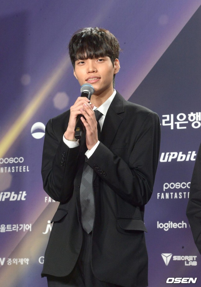 ‘제우스’ 최우제와 함께 모스트 솔로킬 상을 받은 디플러스 기아(DK) 탑 라이너 ‘시우’ 전시우가 레드 카펫에서 포토타임에 임하고 있다. / [email protected]
