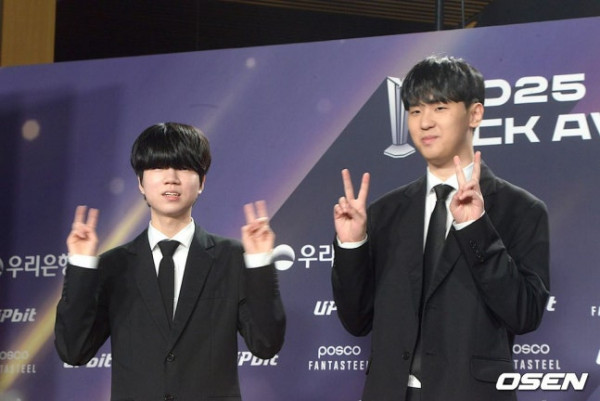 피어엑스의 젊은 피 ‘디아블’ 남대근과 ‘랩터’ 전어진이 레드 카펫에서 포토타임에 임하고 있다. / [email protected]