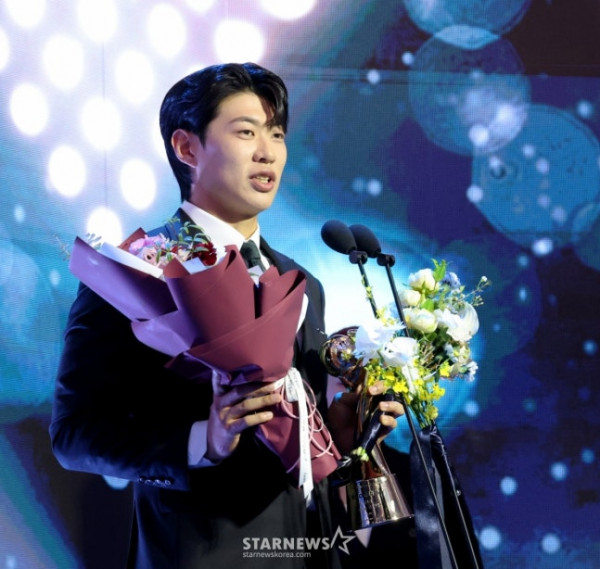 송성문이 KBO 시상식에서 수비상을 수상한 뒤 소감을 밝히고 있다. /사진=강영조 선임기자