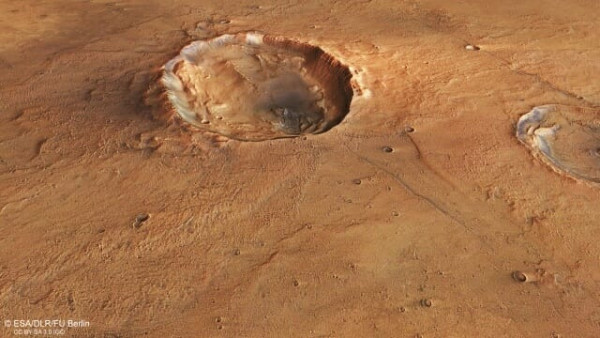 이 분화구의 최신 이미지는 2003년부터 화성을 탐사해 온 ESA 화성 탐사선 마스 익스프레스가 수집한 지형 데이터를 이용해 디지털 방식으로 제작됐다.
