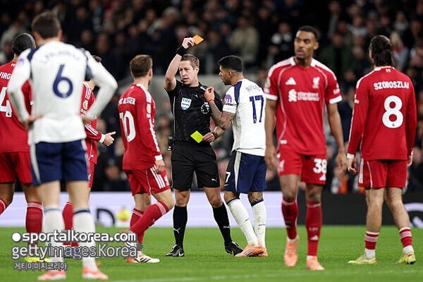 하지만 흐름은 한순간에 무너졌다. 전반 31분 사비 시몬스가 버질 반 다이크를 향해 스터드를 들고 태클을 시도했고 비디오 판독(VAR) 끝에 레드카드를 받고 퇴장당했다. 수적 열세에 몰린 토트넘은 이후 연달아 실점을 허용하며 0-2로 끌려갔다.