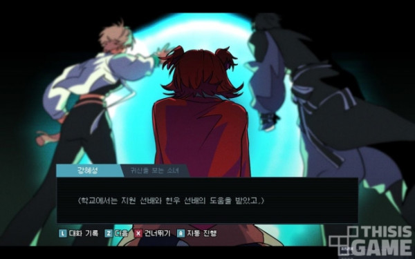 ▲ 스팀 페이지의 시놉시스에도 있는 '전국퇴마사협회'와 악의 조직 '조월회' 사이의 이야기가 큰 맥락으로 등장한다. 퇴마사협회의 선배격으로 등장하는 현우와 지원의 매력이 상당하다.
