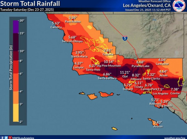 이번 폭우는 북가주에 영향을 주던 ‘대기의 강(Atmospheric River)’이 남가주로 이동하면서 발생하는 것으로, 내일 저녁에는 0.5인치 미만의 비가 내리다가 내일 밤 늦게부터 수요일 새벽 사이 가장 강한 비가 집중될 전망이다.