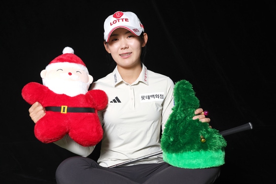 지난 22일 만난 항유민. 크리스마스를 맞아 산타클로스 인형과 트리 모자를 들고 밝게 웃고 있다. 황유민은 내년 LPGA 투어 출격을 앞두고 준비가 한창이다. 강정현 기자